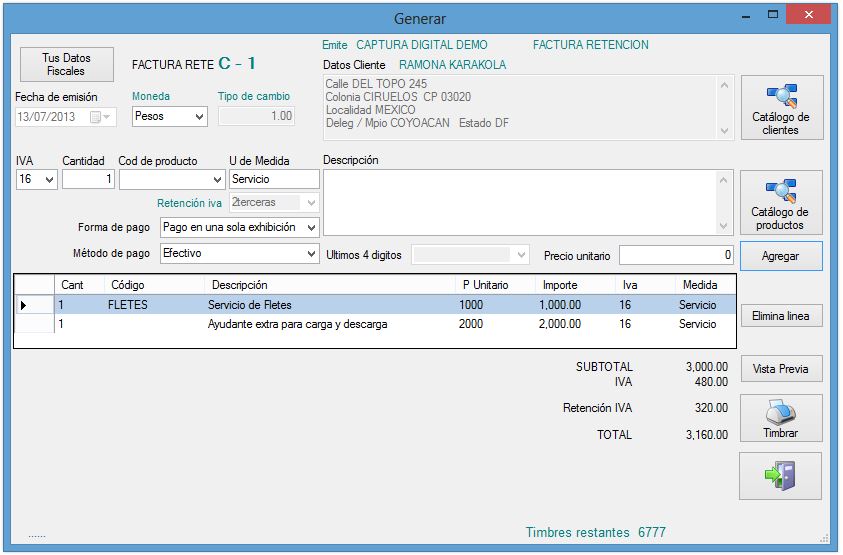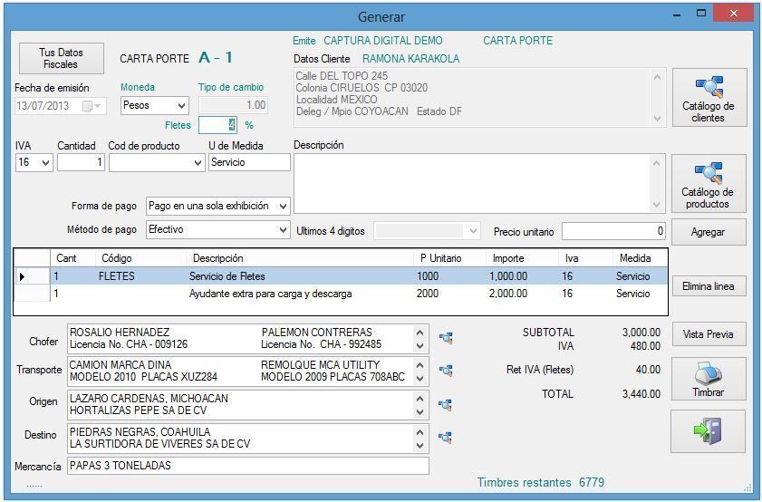 tengo un rfc de un transportista y en la version web aun no genera el 4% de retencion es una factura de fletes, la pregunta seria si tienen listo el sistema web para emitir facturas de fletes ya que lo necesito, me pueden ayudar