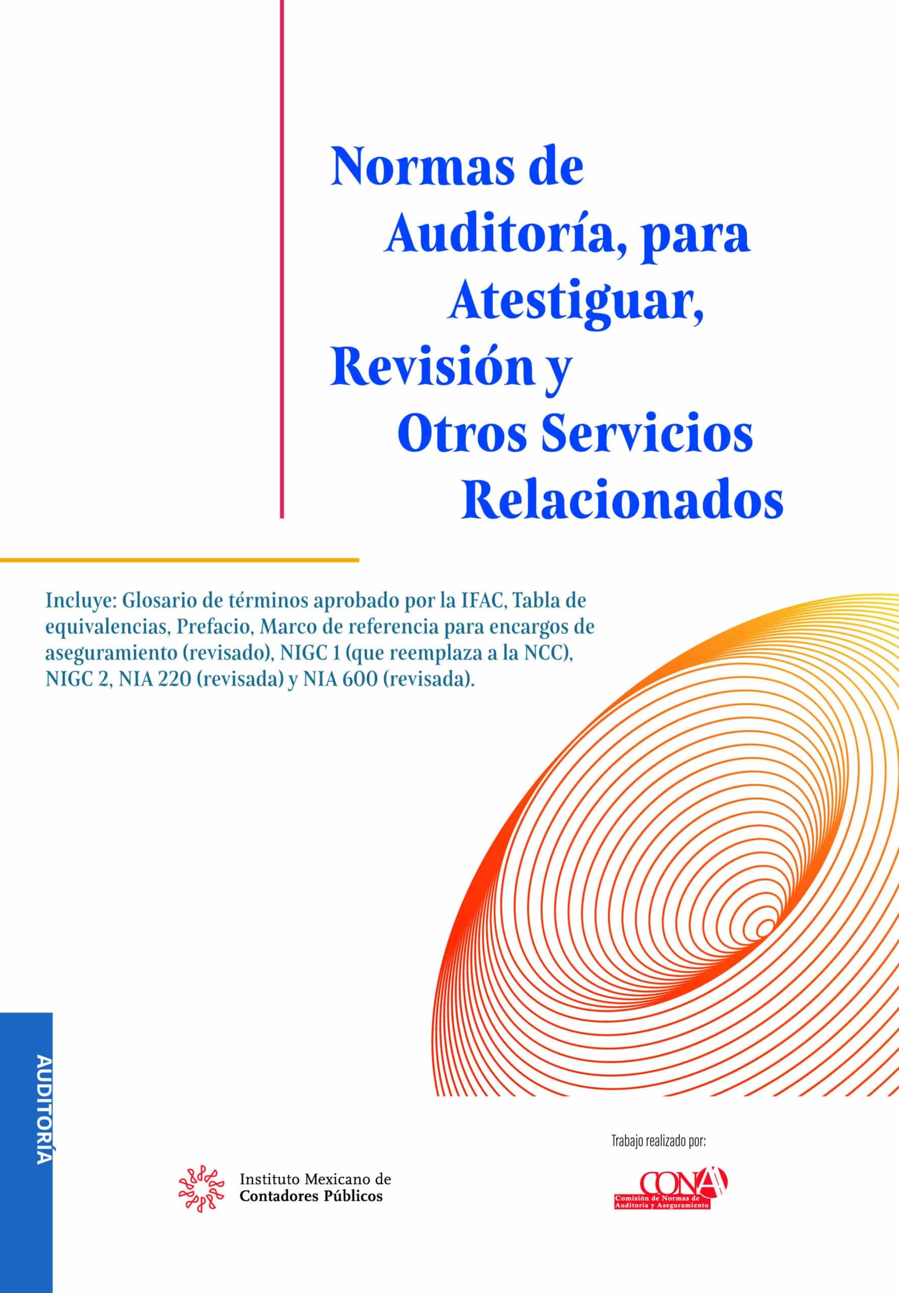 Además, la Comisión de Normas de Auditoría y Aseguramiento (CONAA) del IMCP presenta las siguientes Normas para Atestiguar (NAT) vigentes a partir del 1 de enero de 2021: 7010, Normas para atestiguar; 7020, Informe sobre exámenes y revisiones de información financiera proforma; 7030, Informe sobre el examen del control interno relacionado con la preparación de la información financiera; 7040, Exámenes sobre el cumplimiento de disposiciones específicas y 7090, Informe de atestiguamiento sobre los controles de una organización de servicios; así como la Norma 11010, Encargos para realizar procedimientos convenidos, vigente a partir del 1 de enero de 2023.